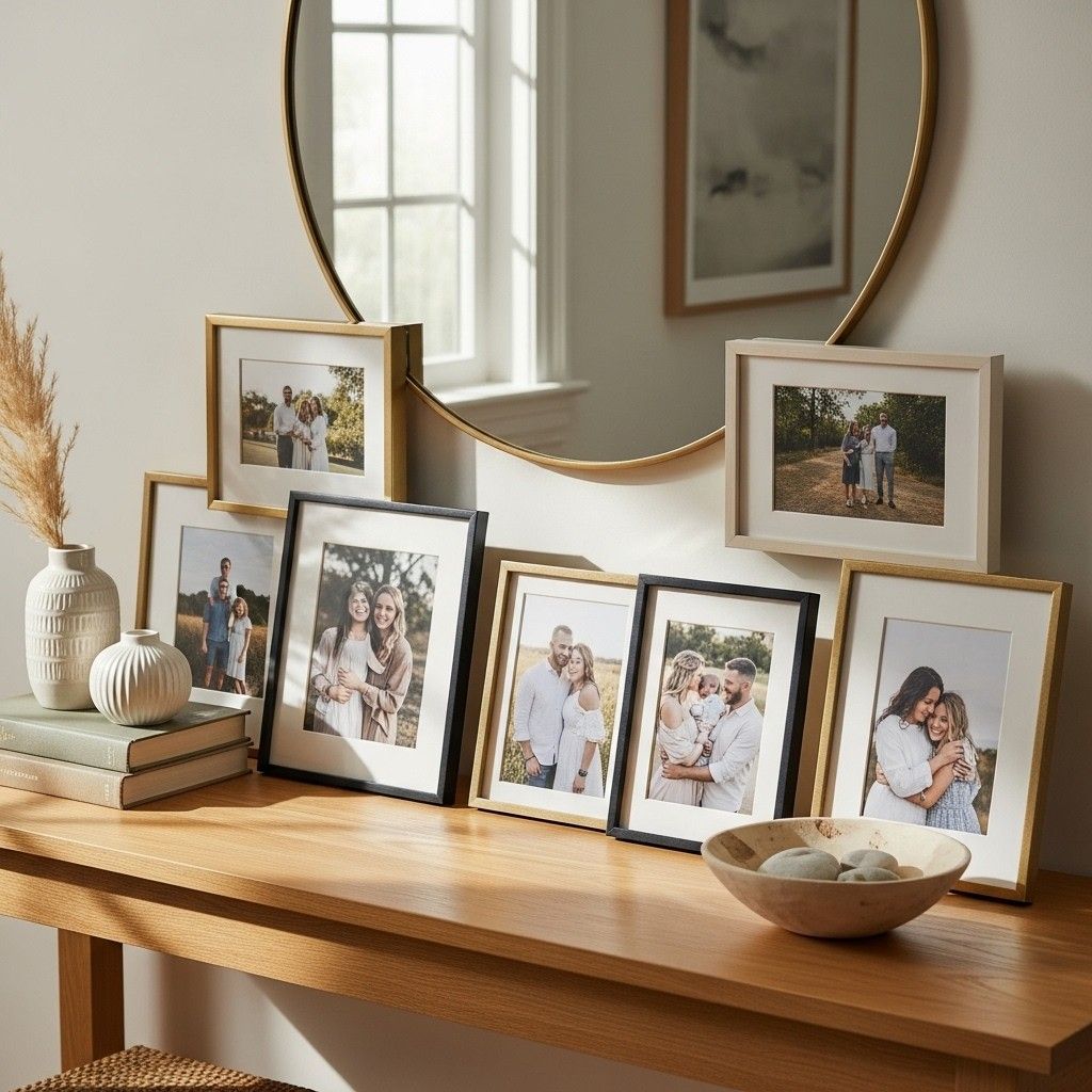 The foyer can feel more intimate and significant if framed family photos are on display.