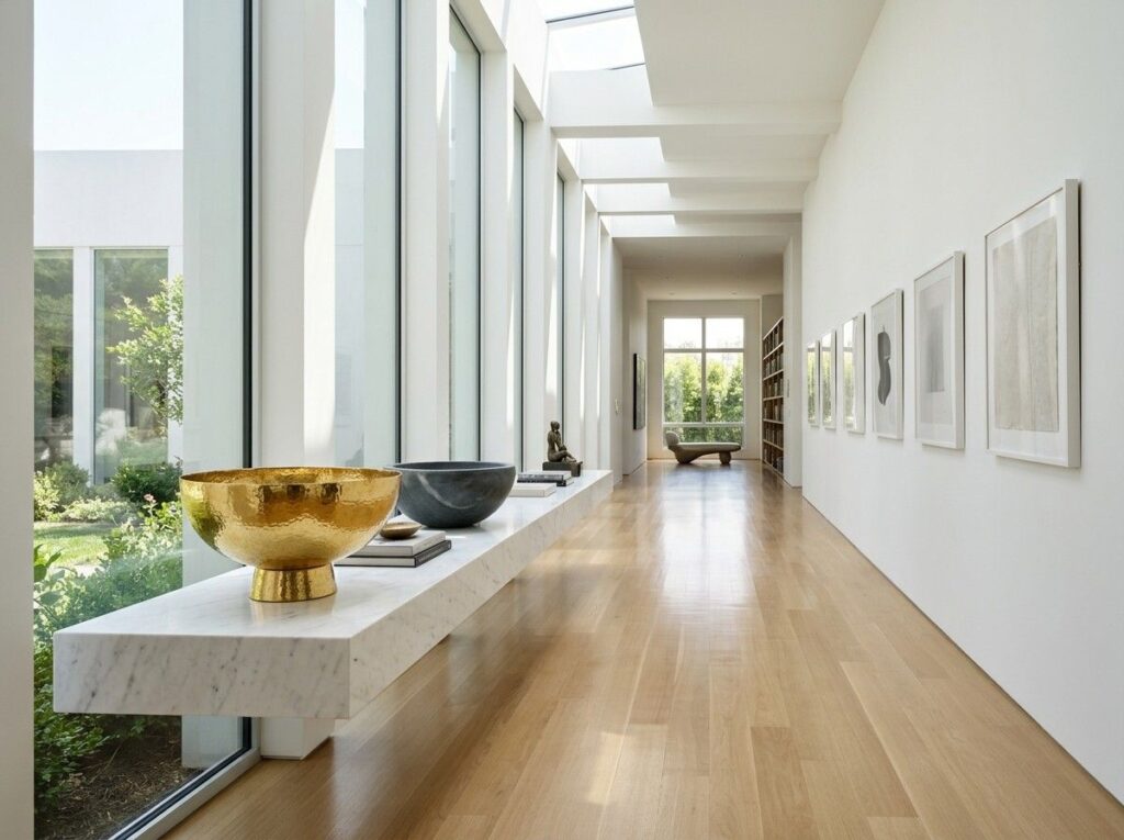 Stylish and inviting, minimalist entryway décor maintains the space tidy.