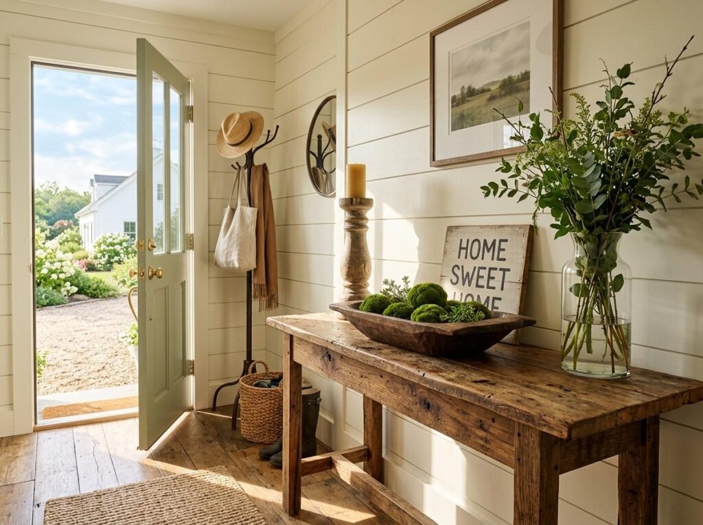 12. Farmhouse Charm with Rustic Wood Decor